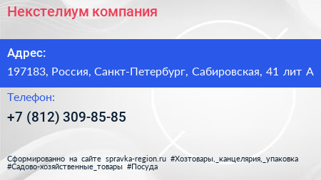 Некстелиум, компания по адресу 197183, Россия, Санкт-Петербург, Сабировская, 41 лит А в дальнейшем Организация, размещена в следующих категориях: