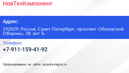 НовТехКомпонент по адресу 192029, Россия, Санкт-Петербург, проспект Обуховской Обороны, 38 лит Б в дальнейшем Организация, размещена в следующих категориях:
