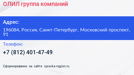 ОЛИЛ, группа компаний по адресу 196084, Россия, Санкт-Петербург, Московский проспект, 91 в дальнейшем Организация, размещена в следующих категориях: