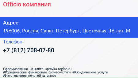 Officio, компания по адресу 196006, Россия, Санкт-Петербург, Цветочная, 16 лит М в дальнейшем Организация, размещена в следующих категориях: