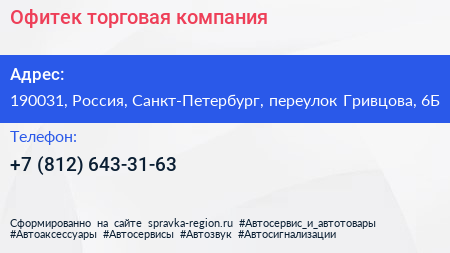 Офитек, торговая компания по адресу 190031, Россия, Санкт-Петербург, переулок Гривцова, 6Б в дальнейшем Организация, размещена в следующих категориях: