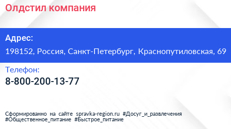 Олдстил, компания по адресу 198152, Россия, Санкт-Петербург, Краснопутиловская, 69 в дальнейшем Организация, размещена в следующих категориях: