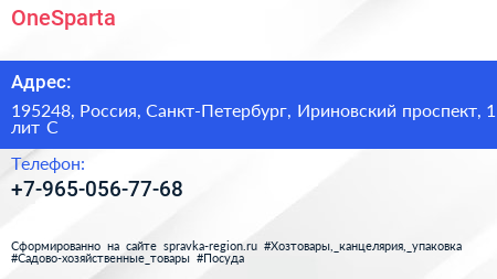 OneSparta по адресу 195248, Россия, Санкт-Петербург, Ириновский проспект, 1 лит С в дальнейшем Организация, размещена в следующих категориях: