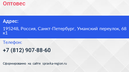 Оптовес по адресу 195248, Россия, Санкт-Петербург, Уманский переулок, 68 к1 в дальнейшем Организация, размещена в следующих категориях: