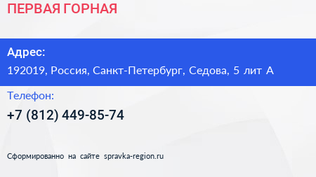 ПЕРВАЯ ГОРНАЯ по адресу 192019, Россия, Санкт-Петербург, Седова, 5 лит А в дальнейшем Организация, размещена в следующих категориях: