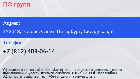 ПФ групп по адресу 193318, Россия, Санкт-Петербург, Складская, 6 в дальнейшем Организация, размещена в следующих категориях: