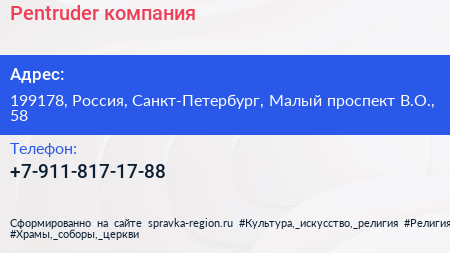 Pentruder, компания по адресу 199178, Россия, Санкт-Петербург, Малый проспект В.О., 58 в дальнейшем Организация, размещена в следующих категориях: