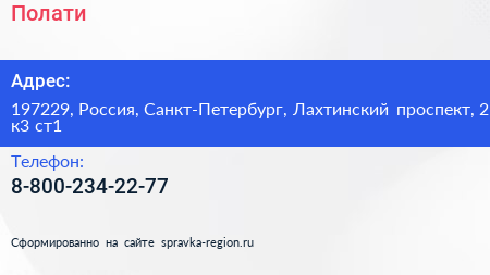 Полати по адресу 197229, Россия, Санкт-Петербург, Лахтинский проспект, 2 к3 ст1 в дальнейшем Организация, размещена в следующих категориях: