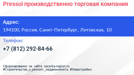 Pressol, производственно-торговая компания по адресу 194100, Россия, Санкт-Петербург, Литовская, 10 в дальнейшем Организация, размещена в следующих категориях: