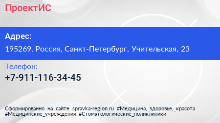 ПроектИС по адресу 195269, Россия, Санкт-Петербург, Учительская, 23 в дальнейшем Организация, размещена в следующих категориях: