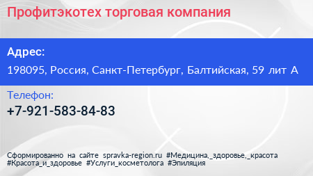 Профитэкотех, торговая компания по адресу 198095, Россия, Санкт-Петербург, Балтийская, 59 лит А в дальнейшем Организация, размещена в следующих категориях: