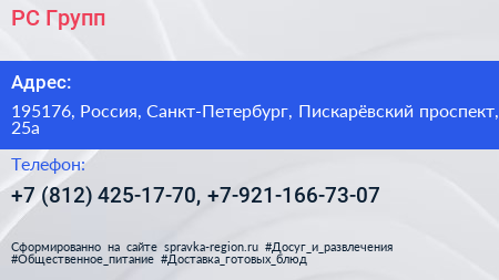 РС-Групп по адресу 195176, Россия, Санкт-Петербург, Пискарёвский проспект, 25а в дальнейшем Организация, размещена в следующих категориях: