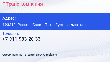 РТранс, компания по адресу 193312, Россия, Санкт-Петербург, Коллонтай, 41 в дальнейшем Организация, размещена в следующих категориях: