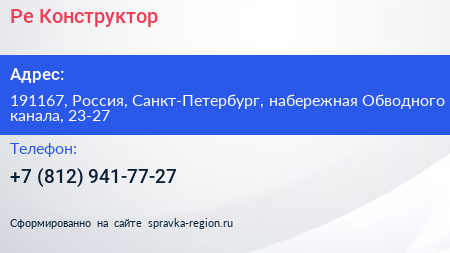 Ре-Конструктор по адресу 191167, Россия, Санкт-Петербург, набережная Обводного канала, 23-27 в дальнейшем Организация, размещена в следующих категориях: