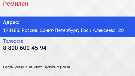 Ремилен по адресу 198188, Россия, Санкт-Петербург, Васи Алексеева, 20 в дальнейшем Организация, размещена в следующих категориях: