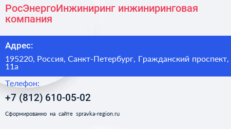 РосЭнергоИнжиниринг, инжиниринговая компания по адресу 195220, Россия, Санкт-Петербург, Гражданский проспект, 11а в дальнейшем Организация, размещена в следующих категориях: