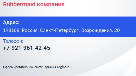 Rubbermaid, компания по адресу 198188, Россия, Санкт-Петербург, Возрождения, 20 в дальнейшем Организация, размещена в следующих категориях:
