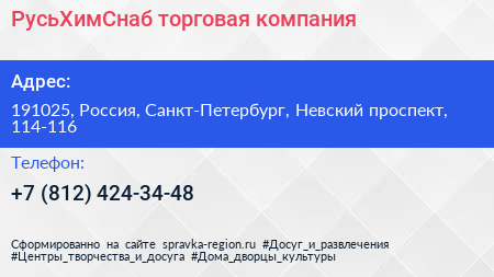 РусьХимСнаб, торговая компания по адресу 191025, Россия, Санкт-Петербург, Невский проспект, 114-116 в дальнейшем Организация, размещена в следующих категориях: