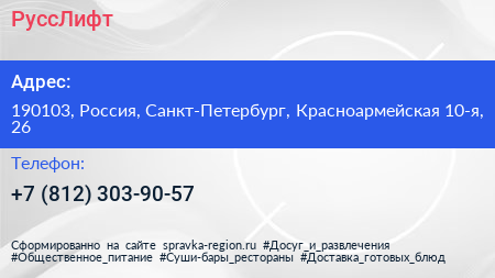 РуссЛифт по адресу 190103, Россия, Санкт-Петербург, Красноармейская 10-я, 26 в дальнейшем Организация, размещена в следующих категориях: