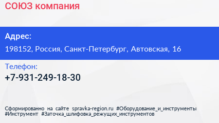 СОЮЗ, компания по адресу 198152, Россия, Санкт-Петербург, Автовская, 16 в дальнейшем Организация, размещена в следующих категориях: