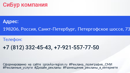 СиБур, компания по адресу 198206, Россия, Санкт-Петербург, Петергофское шоссе, 73 в дальнейшем Организация, размещена в следующих категориях: