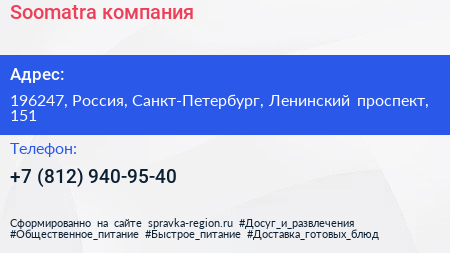 Soomatra, компания по адресу 196247, Россия, Санкт-Петербург, Ленинский проспект, 151 в дальнейшем Организация, размещена в следующих категориях: