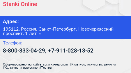 Stanki. Online по адресу 195112, Россия, Санкт-Петербург, Новочеркасский проспект, 1 лит Е в дальнейшем Организация, размещена в следующих категориях: