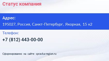 Статус, компания по адресу 195027, Россия, Санкт-Петербург, Якорная, 15 к2 в дальнейшем Организация, размещена в следующих категориях: