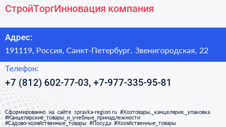 СтройТоргИнновация, компания по адресу 191119, Россия, Санкт-Петербург, Звенигородская, 22 в дальнейшем Организация, размещена в следующих категориях: