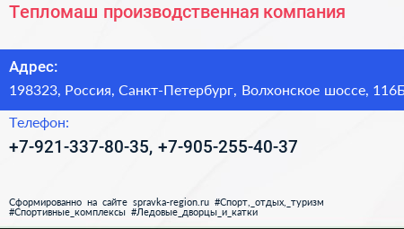Тепломаш, производственная компания по адресу 198323, Россия, Санкт-Петербург, Волхонское шоссе, 116Б в дальнейшем Организация, размещена в следующих категориях: