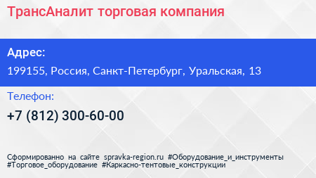 ТрансАналит, торговая компания по адресу 199155, Россия, Санкт-Петербург, Уральская, 13 в дальнейшем Организация, размещена в следующих категориях: