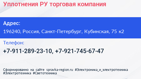 Уплотнения РУ, торговая компания по адресу 196240, Россия, Санкт-Петербург, Кубинская, 75 к2 в дальнейшем Организация, размещена в следующих категориях: