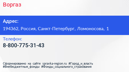 Воргаз по адресу 194362, Россия, Санкт-Петербург, Ломоносова, 1 в дальнейшем Организация, размещена в следующих категориях: