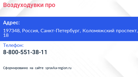 Воздуходувки.про по адресу 197348, Россия, Санкт-Петербург, Коломяжский проспект, 18 в дальнейшем Организация, размещена в следующих категориях: