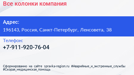 Все колонки, компания по адресу 196143, Россия, Санкт-Петербург, Ленсовета, 38 в дальнейшем Организация, размещена в следующих категориях: