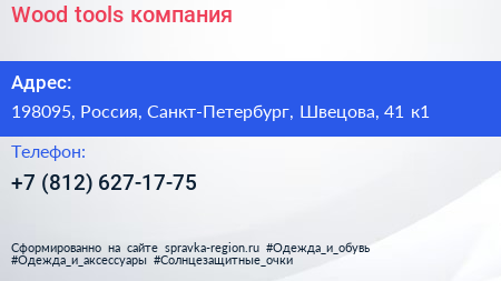 Wood tools, компания по адресу 198095, Россия, Санкт-Петербург, Швецова, 41 к1 в дальнейшем Организация, размещена в следующих категориях: