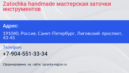 Zatochka handmade, мастерская заточки инструментов по адресу 191040, Россия, Санкт-Петербург, Лиговский проспект, 43-45 в дальнейшем Организация, размещена в следующих категориях: