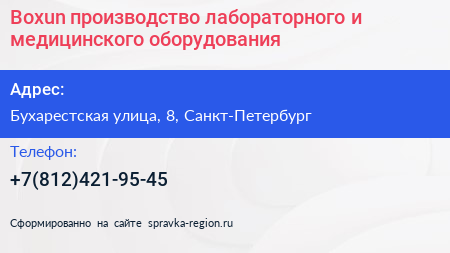 Boxun - производство лабораторного и медицинского оборудования по адресу Бухарестская улица, 8, Санкт-Петербург в дальнейшем Организация, размещена в следующих категориях:
