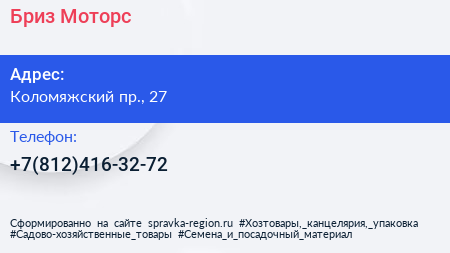 Бриз Моторс по адресу Коломяжский пр., 27 в дальнейшем Организация, размещена в следующих категориях: