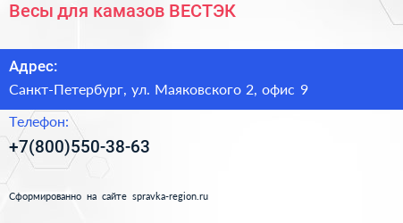 Весы для камазов ВЕСТЭК по адресу Санкт-Петербург, ул. Маяковского 2, офис 9 в дальнейшем Организация, размещена в следующих категориях: