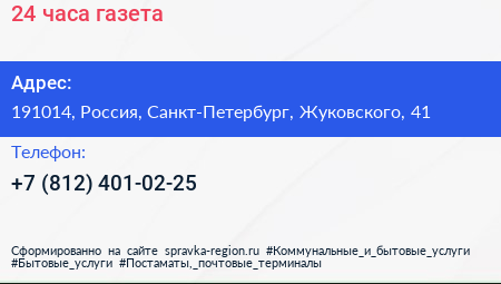 24 часа, газета по адресу 191014, Россия, Санкт-Петербург, Жуковского, 41 в дальнейшем Организация, размещена в следующих категориях: