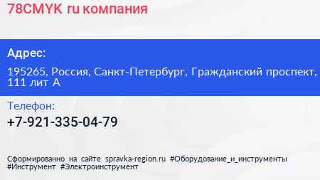 78CMYK.ru, компания по адресу 195265, Россия, Санкт-Петербург, Гражданский проспект, 111 лит А в дальнейшем Организация, размещена в следующих категориях: