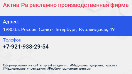 Актив Ра, рекламно-производственная фирма по адресу 198035, Россия, Санкт-Петербург, Курляндская, 49 в дальнейшем Организация, размещена в следующих категориях: