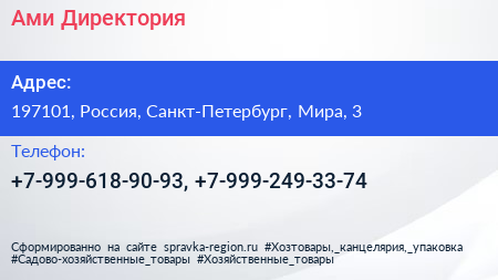 Ами Директория по адресу 197101, Россия, Санкт-Петербург, Мира, 3 в дальнейшем Организация, размещена в следующих категориях: