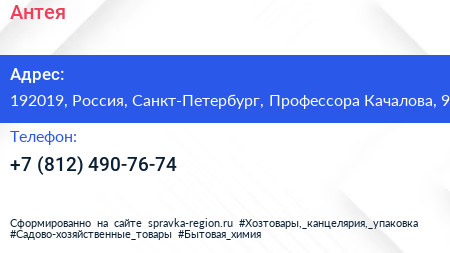 Антея по адресу 192019, Россия, Санкт-Петербург, Профессора Качалова, 9 в дальнейшем Организация, размещена в следующих категориях: