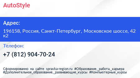 AutoStyle по адресу 196158, Россия, Санкт-Петербург, Московское шоссе, 42 к2 в дальнейшем Организация, размещена в следующих категориях: