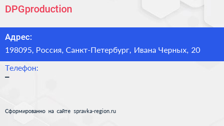 DPGproduction по адресу 198095, Россия, Санкт-Петербург, Ивана Черных, 20 в дальнейшем Организация, размещена в следующих категориях: