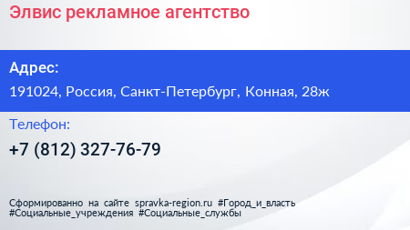 Элвис, рекламное агентство по адресу 191024, Россия, Санкт-Петербург, Конная, 28ж в дальнейшем Организация, размещена в следующих категориях: