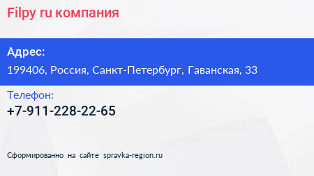 Filpy.ru, компания по адресу 199406, Россия, Санкт-Петербург, Гаванская, 33 в дальнейшем Организация, размещена в следующих категориях: