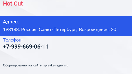 Hot Cut по адресу 198188, Россия, Санкт-Петербург, Возрождения, 20 в дальнейшем Организация, размещена в следующих категориях: